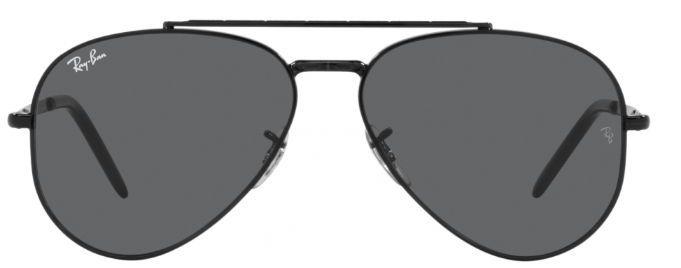 This aviator Ray-Ban sunglass comes in a black frame with grey green polarised lenses.
